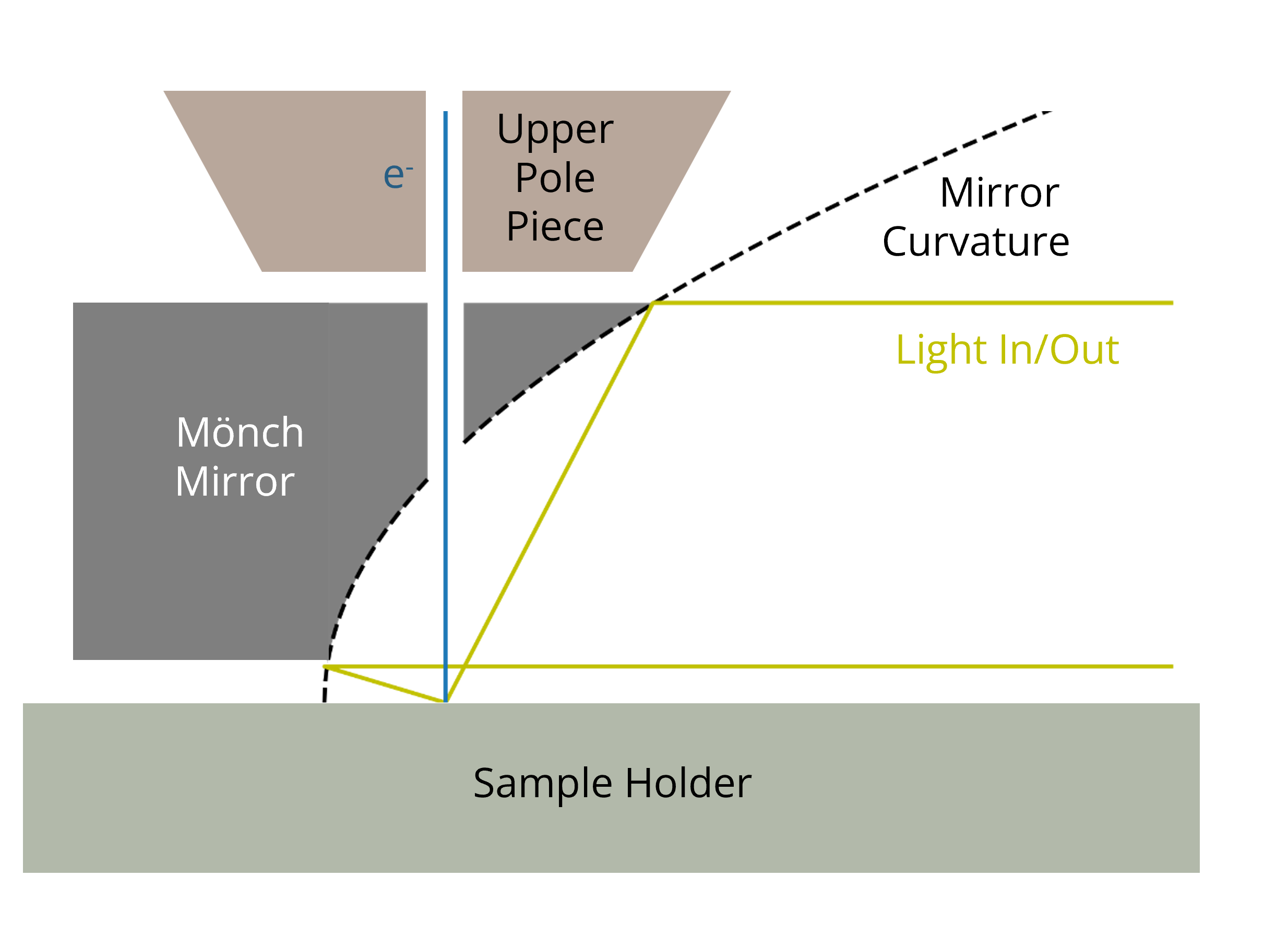 The Mönch is an advanced add-on for coupling light into and out of STEM microscopes, perfect for cathodoluminescence spectroscopy and a wide range of light injection applications.