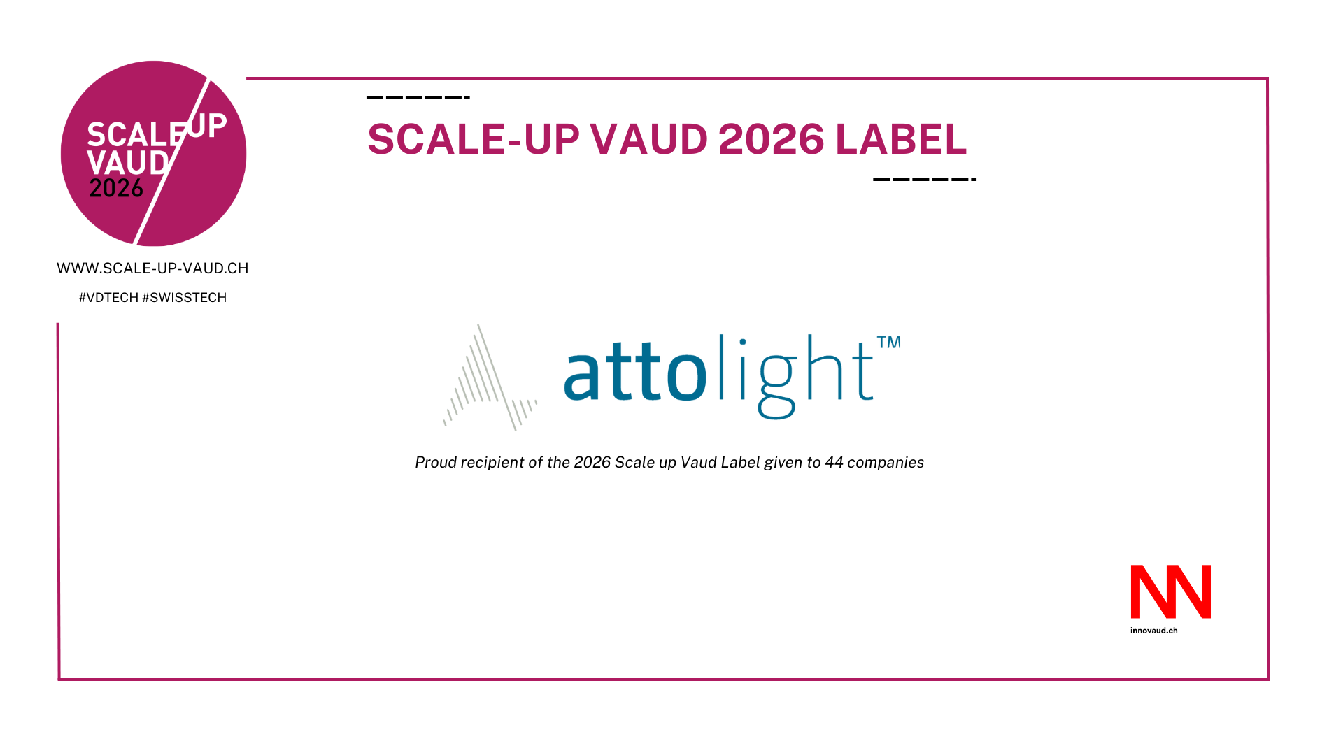 We are thrilled to share that Attolight has once again been selected among the 44 Vaud-based companies awarded the Scale-Up Vaud 2026 label — marking our second consecutive recognition. This distinction honors innovative, fast-growing companies and celebrates the programme’s 10th anniversary.